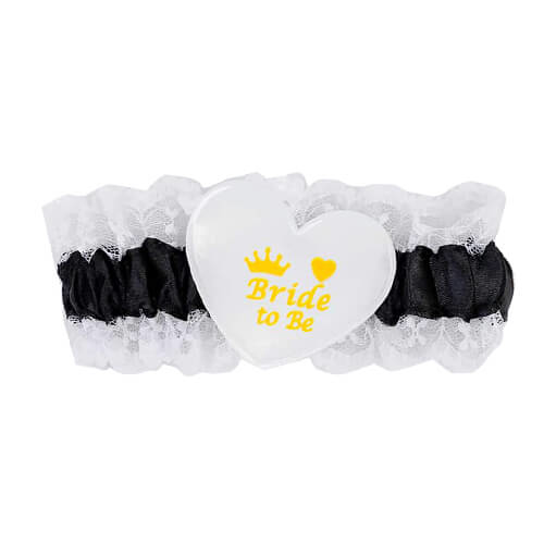 ביריות תחרה שחור לבן עם לב bride to be מושלמות למסיבת רווקות