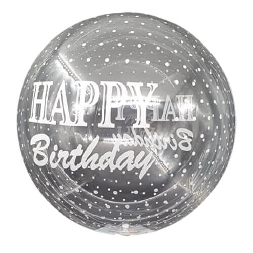 בלון הליום באבל נקודות שקוף עם הכיתוב Happy birthday