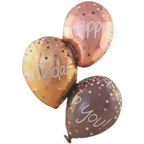 בלון הליום בצורת שלישיית בלונים מחוברים עם כיתוב Happy Birthday To You