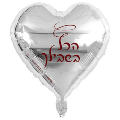 בלון הליום לב כסוף עם הכיתוב הכל בשבילך באדום