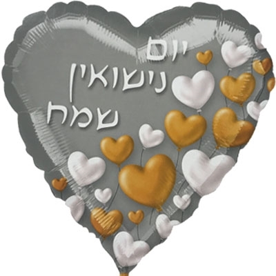 בלון הליום בצורת לב עם כיתוב יום נישואין שמח