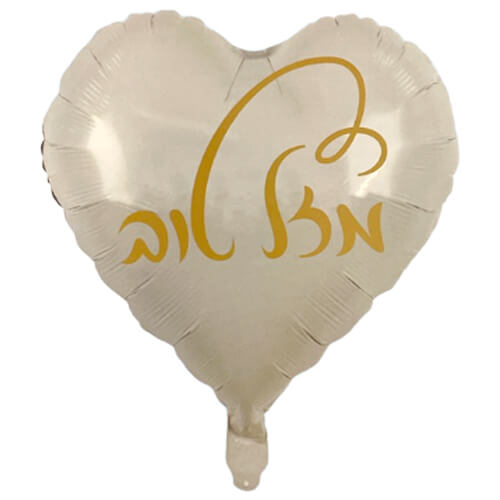 בלון הליום לב לבן עם הכיתוב מזל טוב בזהב