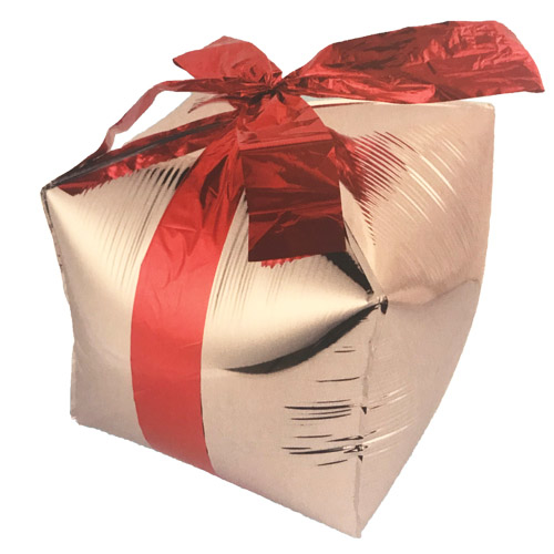 בלון הליום בצורת מתנה כסופה עם סרט אדום גודל הבלון: 69 ס”מ לא מגיע מנופח