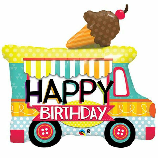 בלון הליום ענק אוטו גלידה עם כיתוב Happy Birthday באווירת קיץ גודל הבלון: 91 ס”מ לא מגיע מנופח