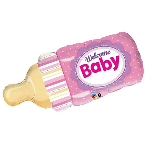 בלון הליום ענק בצורת בקבוק ורוד עם הכיתוב Welcome Baby