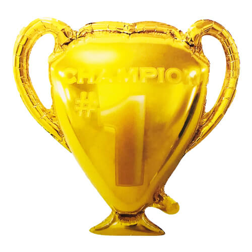 בלון הליום בצורת גביע ניצחון בצבע זהב עם כיתוב: champion 1