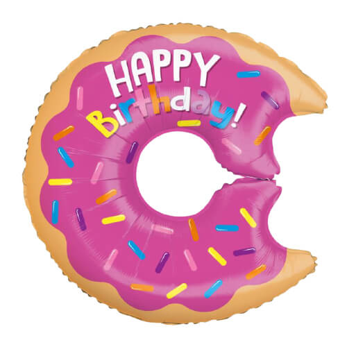 בלון הליום ענק בצורת דונאטס עם כיתוב: Happy Birthday