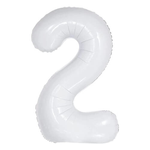 בלון ספרה 2 בצבע לבן לניפוח בהליום או באוויר (באמצעות קשית)