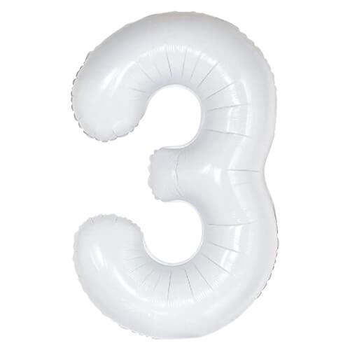 בלון ספרה 3 בצבע לבן לניפוח בהליום או באוויר (באמצעות קשית)