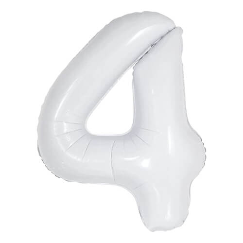 בלון ספרה 4 בצבע לבן לניפוח בהליום או באוויר (באמצעות קשית)