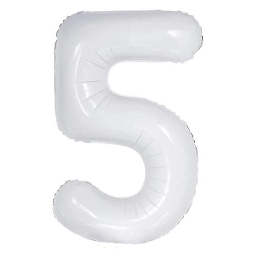בלון ספרה 5 בצבע לבן לניפוח בהליום או באוויר (באמצעות קשית)