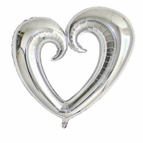 בלון בצורת לב חלול בצבע כסף