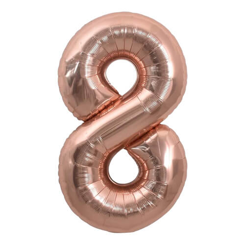 בלון ענק רוז גולד מנצנץ סיפרה 8 גודל: 86 סמ לא מגיע מנופח