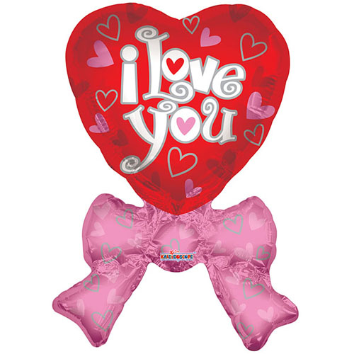 בלון הליום ענק I Love You לב עם סרט