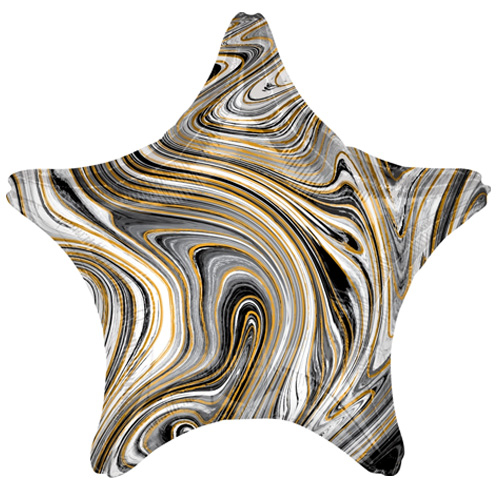 בלון מיילר מיוחד במינו בעיצוב שיש יוקרתי בצבעים שחור לבן וזהב גודל: 43 ס”מ לא מגיע מנופח