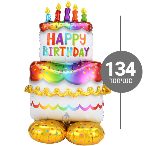 בלון עומד ענק בעיצוב עוגה צבעונית בצבעים מטאליים מושלמים, לקישוט צילומים והרמת המסיבה גודל: 134 ס”מ לניפוח באוויר