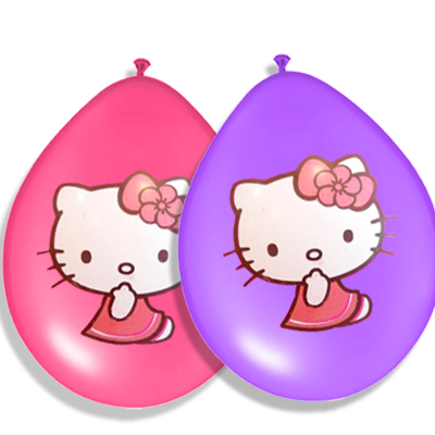 בלוני לטקס ב 4 צבעים עם הדפס הלו קיטי, לניפוח אוויר בלבד, לא מיועד להליום. לא מגיע מנופח