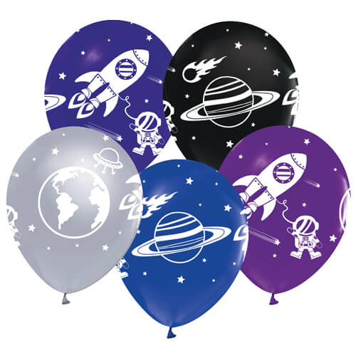 מארז של 5 בלוני לטקס ציבעוניים בקונספט : חלל.