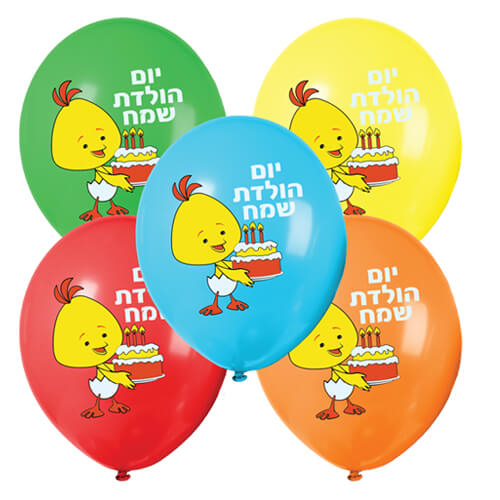 מארז של 5 בלוני לטקס ציבעוניים עם הדפס של הדמות לולי, והכיתוב : יום הולדת שמח