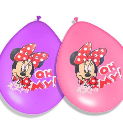 12 בלוני לטקס ב 4 צבעים עם הדפס מיני מאוס, לניפוח אוויר בלבד, לא מיועד להליום.