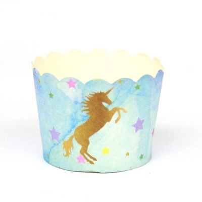 גביעי קאפקייקס בצבעי פסטל בעיטור חד קרן זהב כמות בחבילה: 50 יחידות