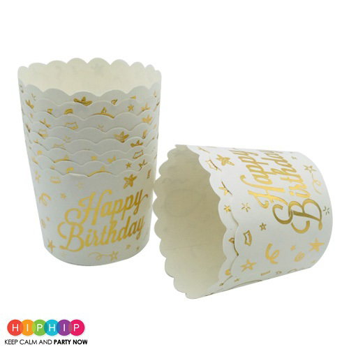 גביעי קאפקייקס איכותיים ואסטתיים Happy Birthday בעיתור בצבע זהב מטאלי מבריק