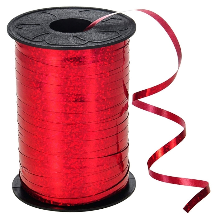 סליל סרט בצבע אדום מטאלי לקשירת בלונים ליום הולדת אורך הסליל: 300 יארד