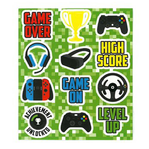 דף מדבקות בקונספט גיימינג, מושלם כהפתעה במסיבת יום הולדת גודל הדף: 10×11.5 ס”מ 12 מדבקות בדף