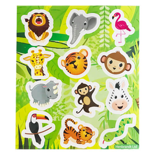 דף מדבקות בקונספט חיות, מושלם כהפתעה במסיבת יום הולדת גודל הדף: 10×11.5 ס”מ 12 מדבקות בדף