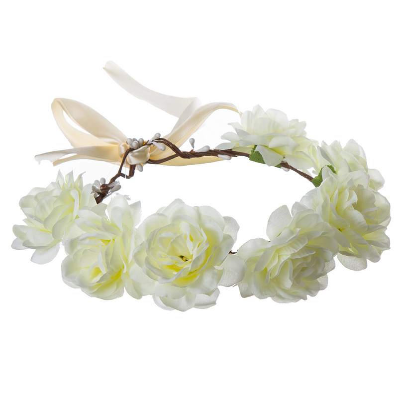 זר פרחים לראש בצבע לבן קרם