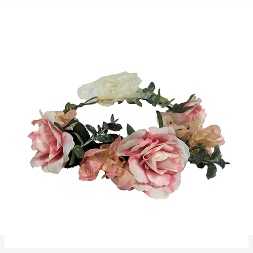 זר פרחים לראש בצבע אפרסק ורוד בהיר