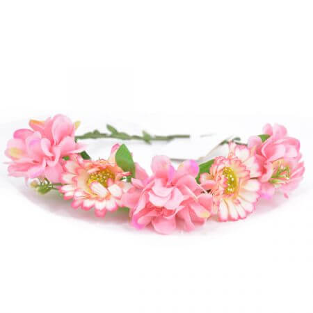 זר פרחים לראש – ורוד משולב