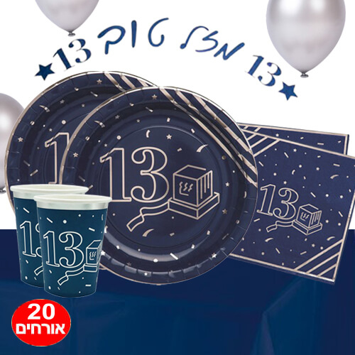 חבילת יום הולדת גיל 13 כחול 20 מוזמנים