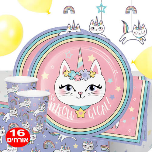 חבילת יום הולדת חתול חד קרן 16 מוזמנים
