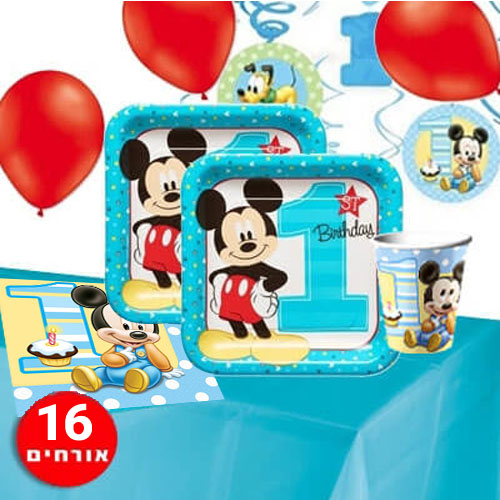 חבילת יום הולדת מיקי מאוס שנה 16 מוזמנים