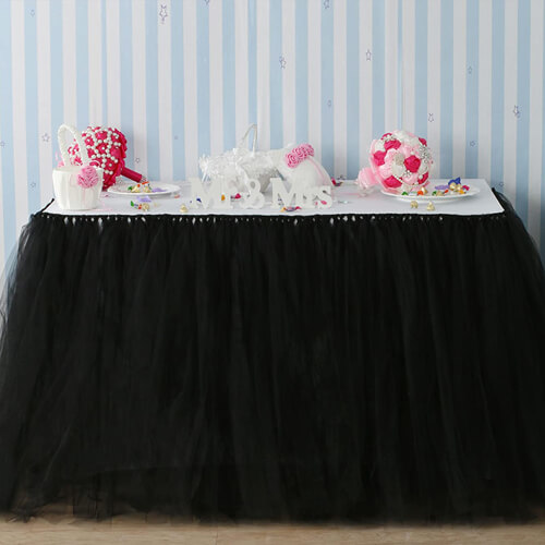 חצאית טול לשולחן בצבע שחור, מושלם לכל מסיבה ויום הולדת