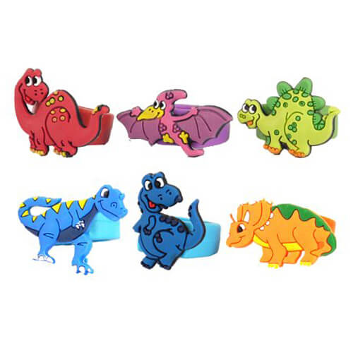 טבעות סיליקון בקונספט דינוזאורים, מושלם כהפתעה במסיבת יום הולדת עשוי מסליקון רך ונוח מגיע במגוון דגמים, הבחירה אקראית גודל: 2×3 ס”מ