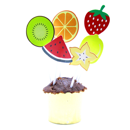 מארז קישוטים לקאפקייקס מאפים וכל המתוקים בעיצוב קיצי בצורת פירות צבעוניים 6 יחידות באורך 12 ס”מ