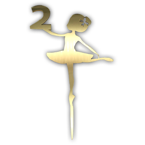 טופר לעוגה ולקישוט שולחן בצבע זהב מראה בקונספט בלרינה גיל שנתיים גודל: 17×12 ס”מ