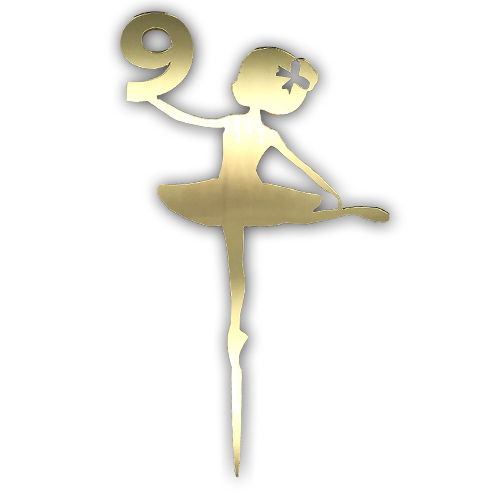 טופר לעוגה ולקישוט שולחן בצבע זהב מראה בקונספט בלרינה גיל תשע גודל: 17×12 ס”מ
