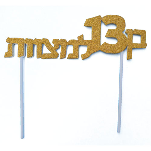 טופר אקרילי בצבע זהב מנצנץ מראה לקישוט עוגת בר מצווה ויום הולדת
