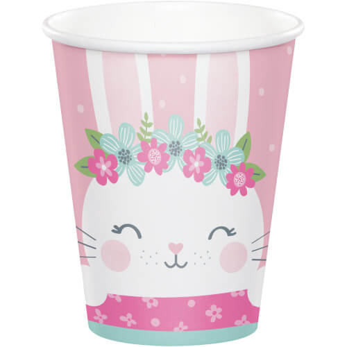 8 כוסות נייר חם/קר השייכות למסיבת ארנבת פרחונית