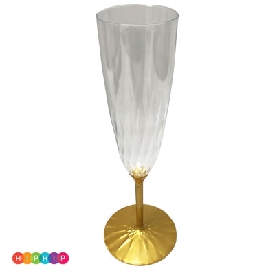 כוסות שמפניה חד פעמיות שקופות, בעלות רגל זהב, הכוסות מגיעות מוכנות להגשה. 6 כוסות במארז