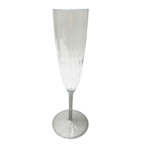 כוסות שמפניה חד פעמיות שקופות עם רגל בצבע כסוף