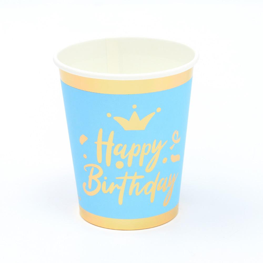 כוסות כחולות, כיתוב בזהב להופעה מרשימה ביום הולדת.