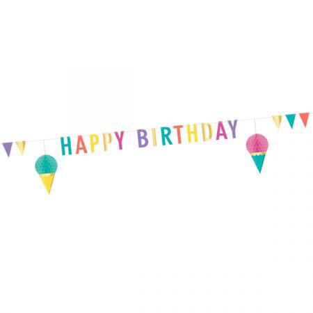 כרזת קישוט לתלייה happy birthday בקונספט גלידה אורך 3 מטר