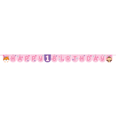 כרזת נייר HAPPY BIRTHDAY השייכת למסיבת FUN ורוד!