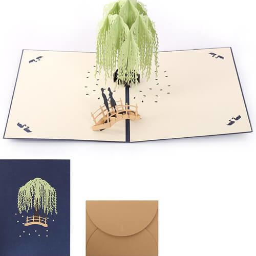 כרטיס ברכה יוקרתי נפתח עם עץ ירוק וגשר מאוהבים גודל הכרטיס: 15×20 ס”מ