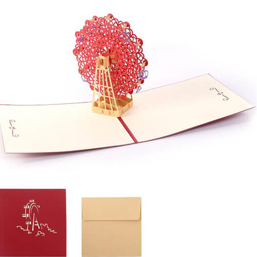 כרטיס ברכה יוקרתי נפתח עם גלגל ענק קרוסלה גודל הכרטיס: 16×16 ס”מ