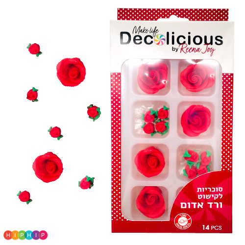 מארז 14 קישוטי עוגה יפים במיוחד בעיצוב ורדים גודל ורד גדול: 3 ס”מ ורד קטן: 1 ס”מ